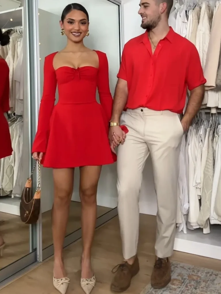 If you’re the type who loves being the center of attention, this is for you. Full red is intense, but when you split it up—like you in a red dress and him in a red shirt—it actually feels playful instead of overwhelming.