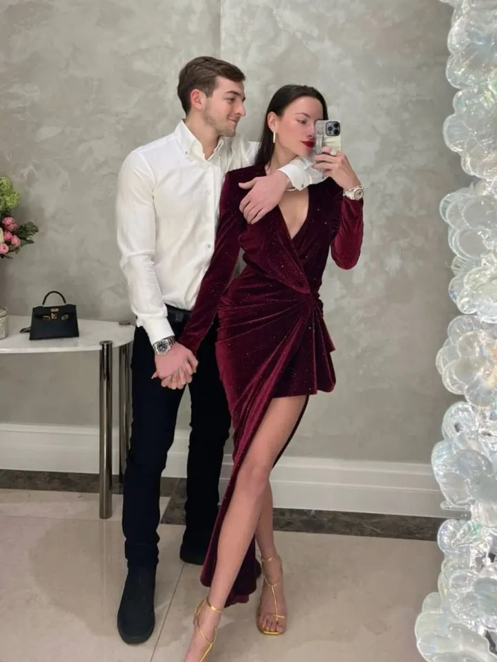 If you really want to lean into that romantic, high-end vibe, I highly recommend going with a burgundy velvet dress. I’ve been eyeing this one because the fabric looks so rich and plush.