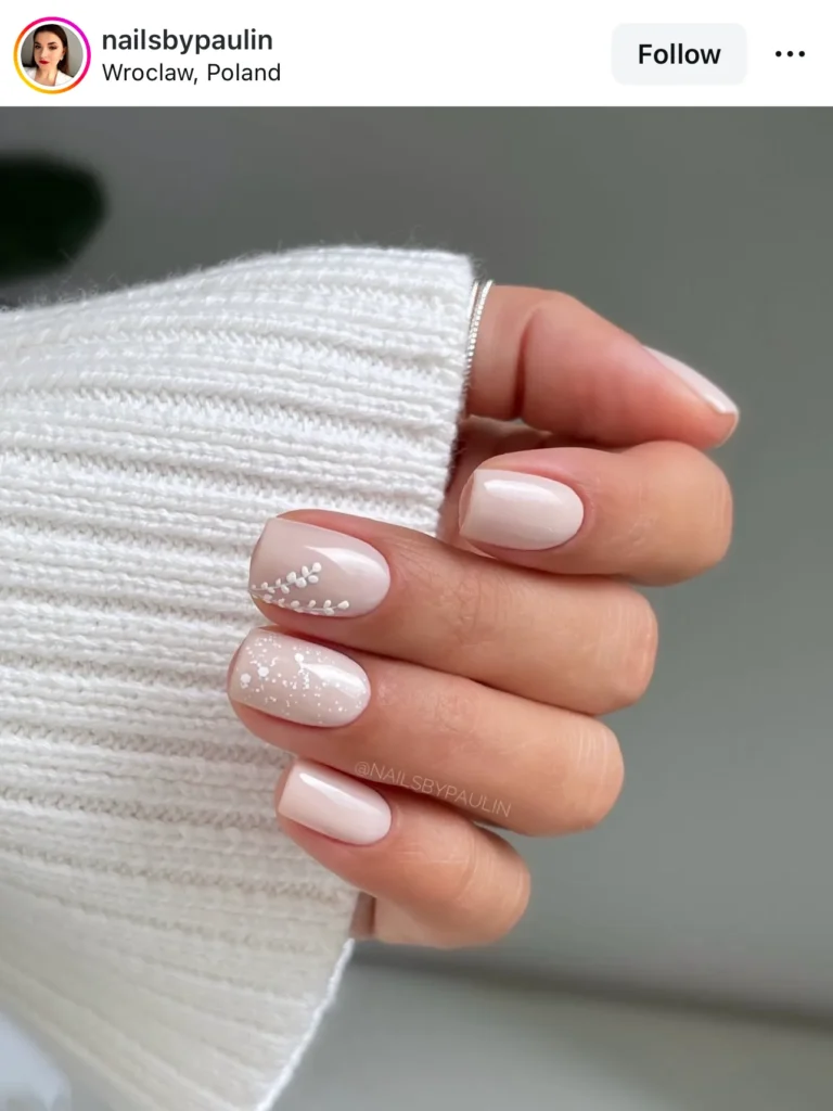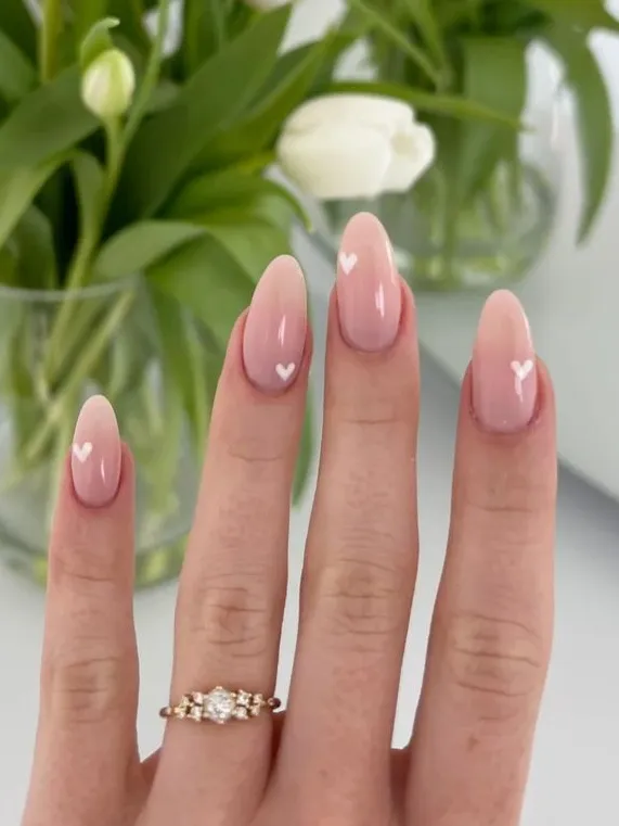 It’s not just for Valentine’s! Tiny white hearts on a nude nail feel like a fresh, “new beginnings” vibe for spring.