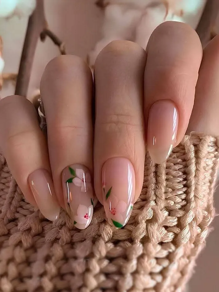 I’d paint a wreath of petals just around the edges. It keeps the center of the nail bare and clean.