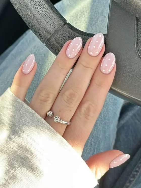 When I want to keep it simple, I go for a sheer nude base with crisp white dots.