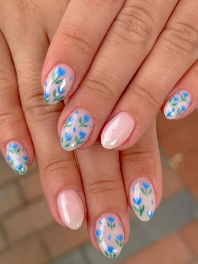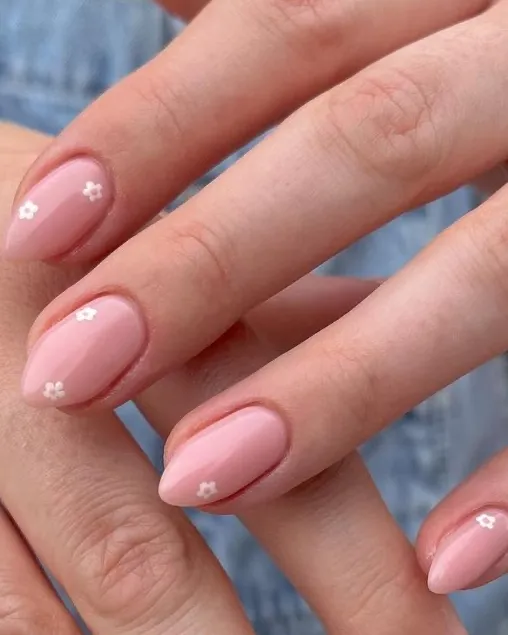 A long almond shape with just one microscopic flower. It’s the ultimate “I have my life together” manicure.