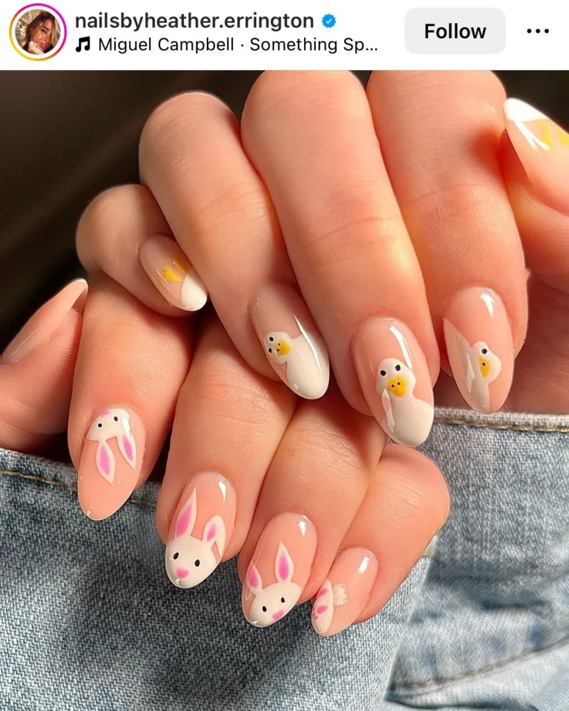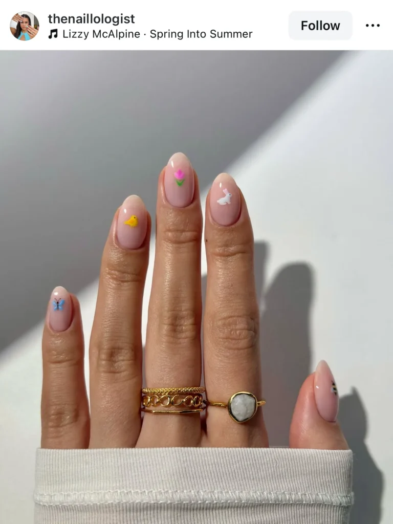 A tiny bunny or chick on a nude base is the only way to do “holiday icons” without looking like a preschooler.