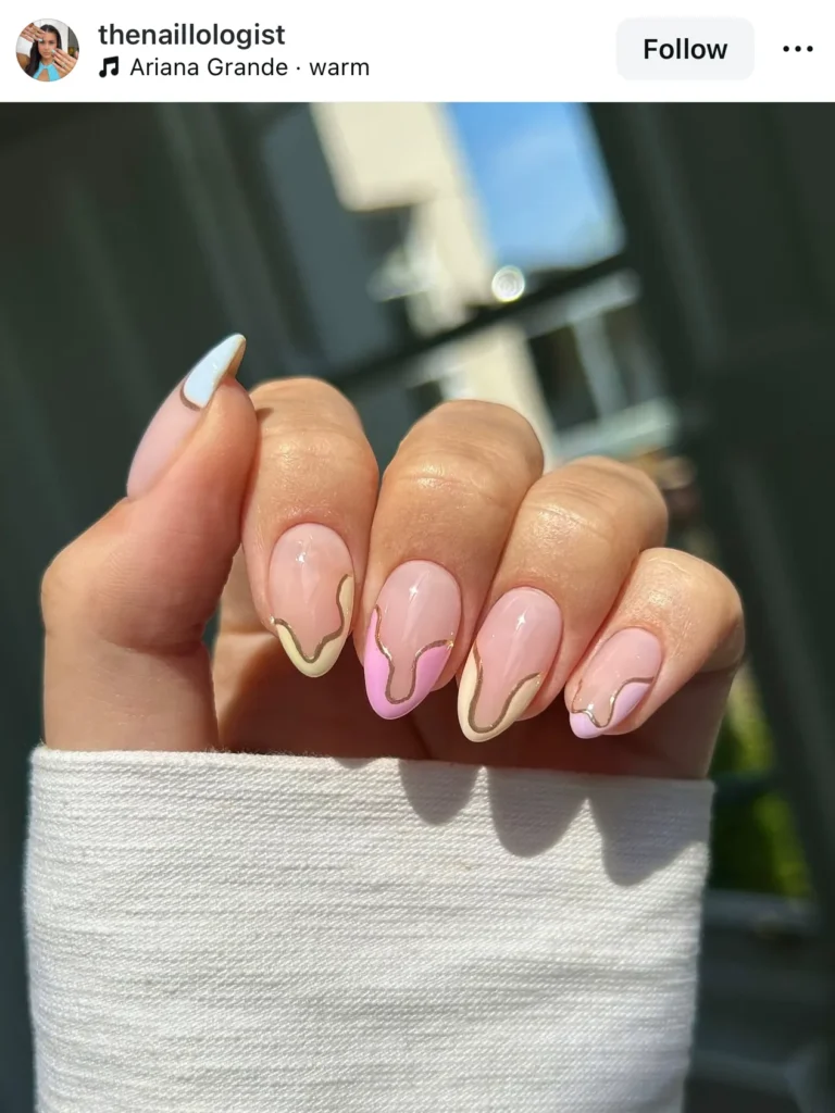 These irregular, curvy lines are for my “cool girl” readers. It’s an artistic take on Easter nail art that feels fresh.
