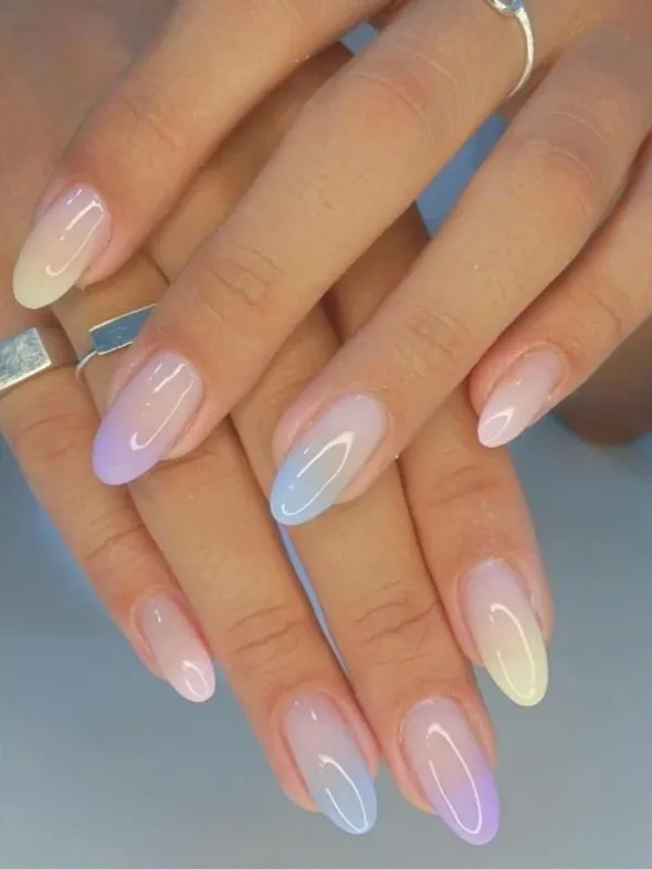 For a more “low-key” vibe, I’m eyeing this soft fade. It starts with a milky base and melts into a pastel gradient at the tips.