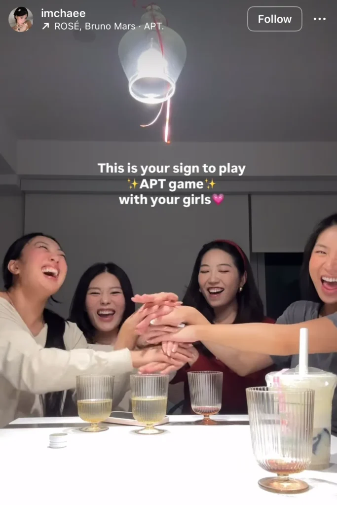 We played this at our last girls’ night and the “APT! APT!” chant was stuck in my head for three days straight. It’s definitely the fastest way to get the energy up.