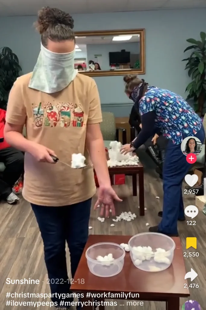 Two blindfolded people—one peels and feeds a banana to the other. It’s messy, ridiculous, and guaranteed to make everyone laugh.