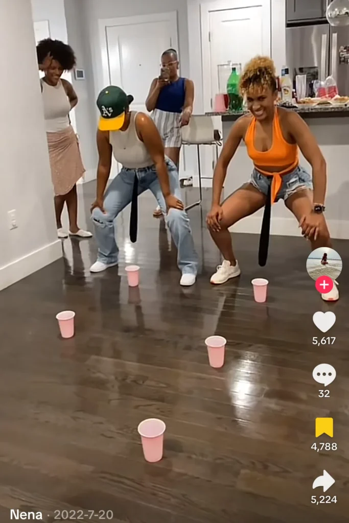 This is just sitting in a circle with drinks. You ask something like “Who’s most likely to ghost a date?” and everyone pours a bit of their drink into the cup of whoever they’re pointing at. It’s a messy way to see what your friends really think of you.