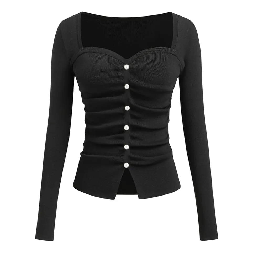 Necklines influence proportion more quietly than most people expect. Shapes that open the chest—V-necks, soft scoops, square cuts—add length through the upper body and help the outfit feel lighter.