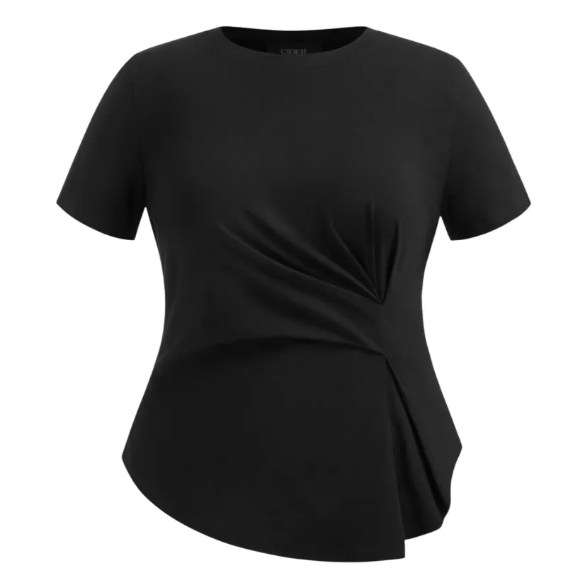 Medium weight fabrics hold their shape in a way that smooths the midsection without adding bulk. When the fabric is too thin it can cling, and when it is too stiff it can widen the upper body, so something in the middle usually feels the most balanced.