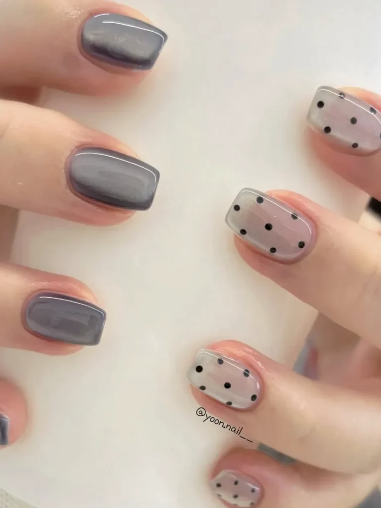 I keep thinking this combo looks calm but still fun. Light blue mixed with soft teal feels fresh, almost like sea foam in sunlight. Tiny dots make it a little playful, the kind of detail that makes you smile when you notice it.