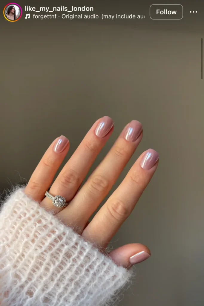 This one looks like pearls melted into polish. Every time you move, it catches the light just right. It feels quiet but fancy, like something you’d wear with a sweater or a silk dress. You don’t even have to try with this one, it just looks put together.