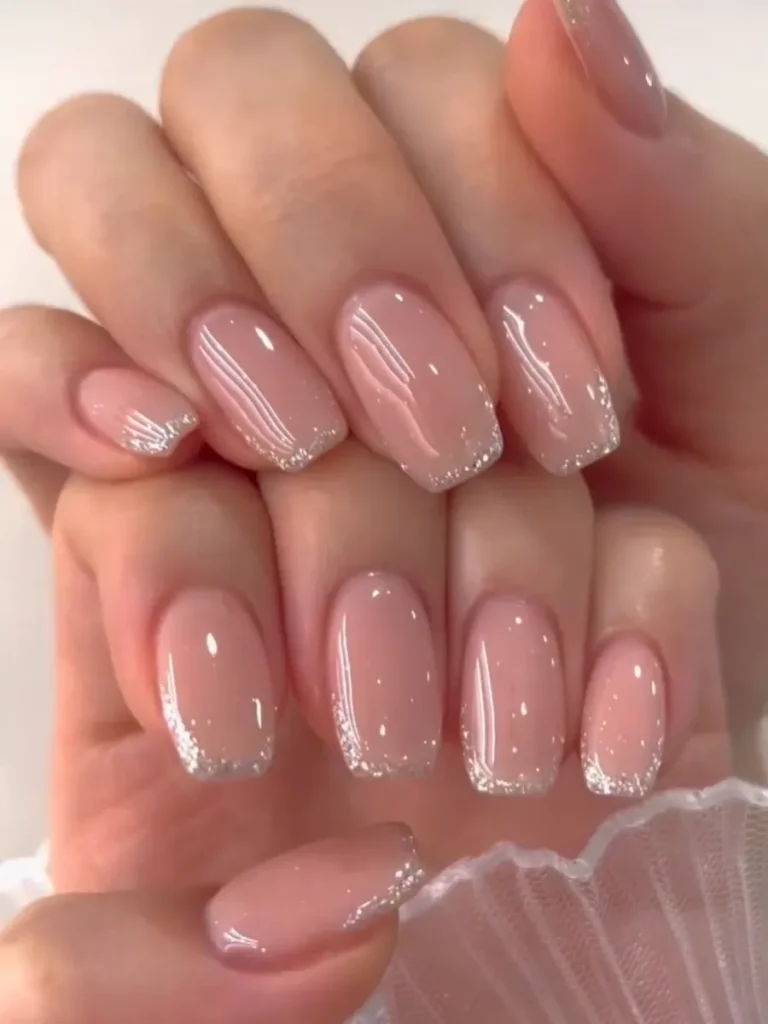 I swear this one always looks cleaner than it should. The nude base keeps it calm, but those thin silver lines give it that little sparkle you notice after a second.