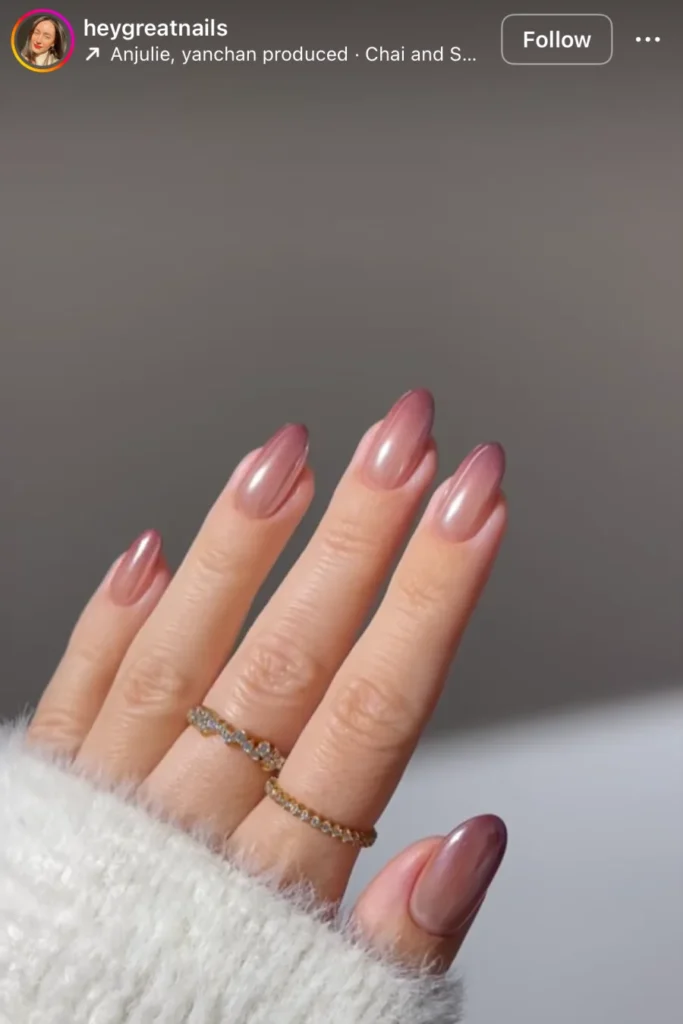 I like a bit of shine in January, just not the bold kind from December. A pearly finish or a thin layer of shimmer gives nails that soft reflection you only notice in sunlight. It feels delicate and clean, like glass catching light on a quiet morning.
