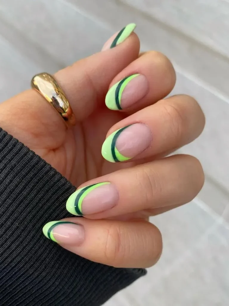 If you’re craving one bold moment, this is it. By tucking the neon into a thin side tip, it looks intentional and sharp rather than overwhelming.