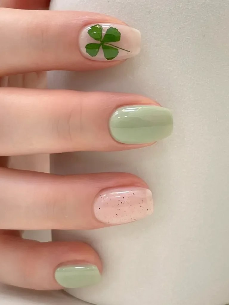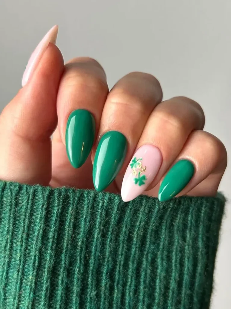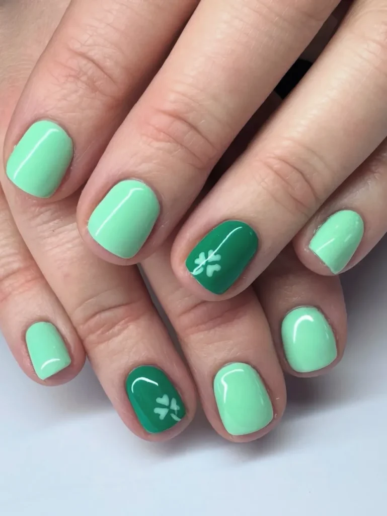 I’m a firm believer in the one-and-done rule. One accent nail with a tiny shamrock keeps things playful and light—any more, and it starts to feel themed.