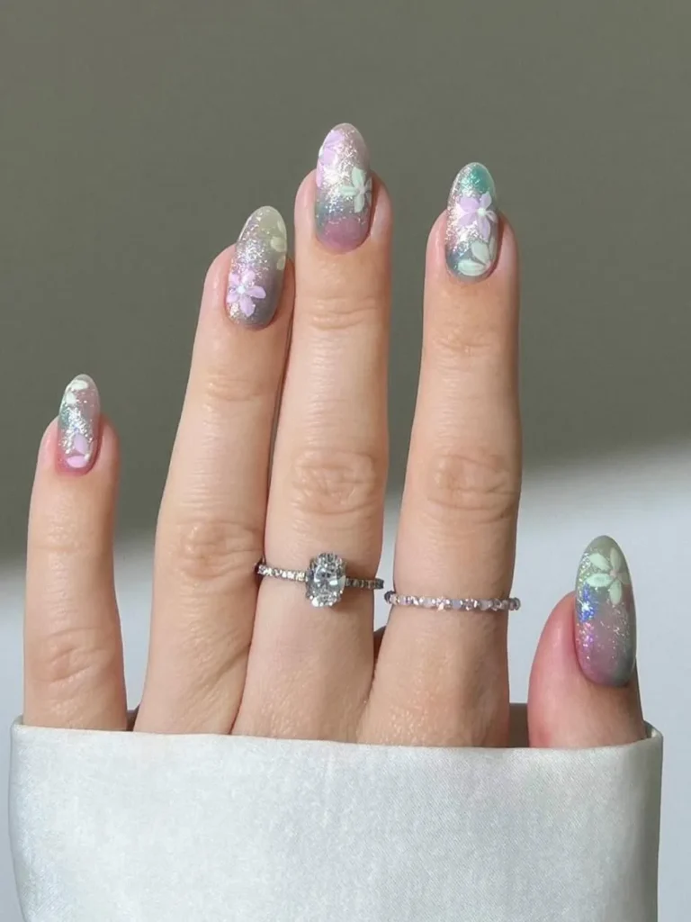 If you’re still on the fence about nail art, start here. Instead of a full flower, think of it as “floral dust.” Tiny, scattered flecks of color give the idea of a garden without actually committing to a heavy design.