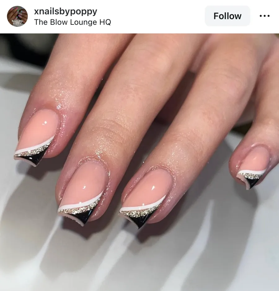 14. Black French Tips with Sparkles