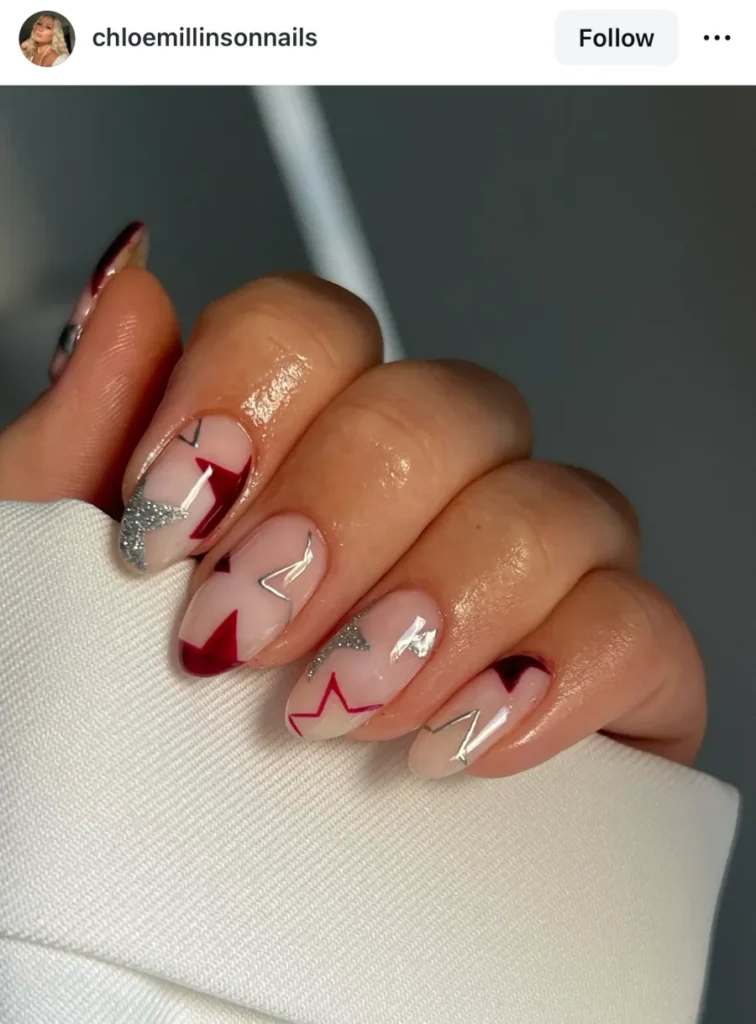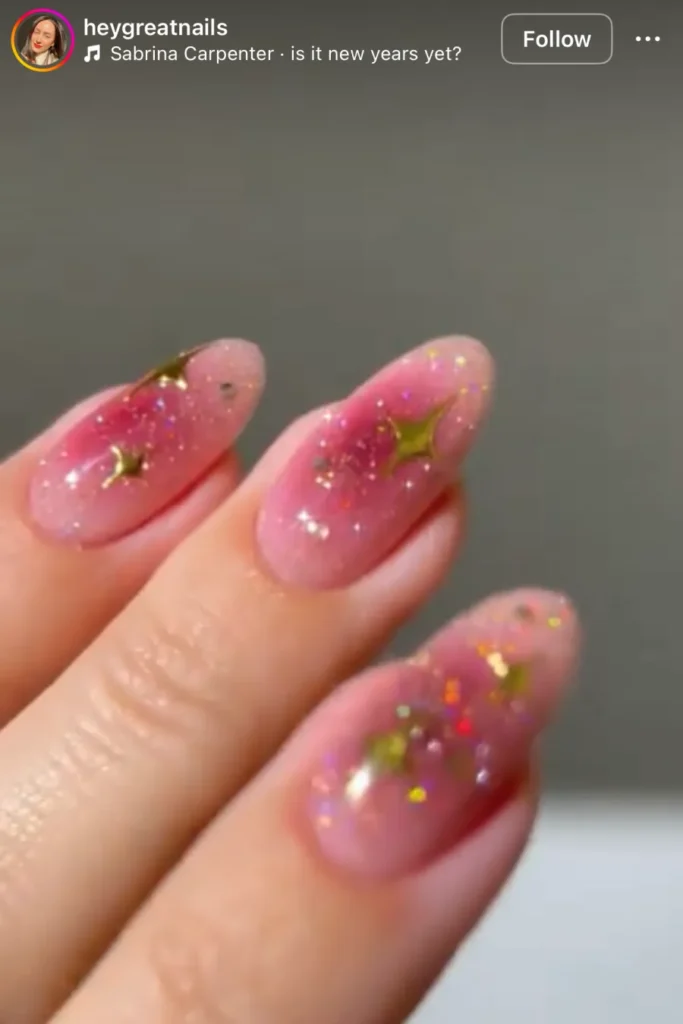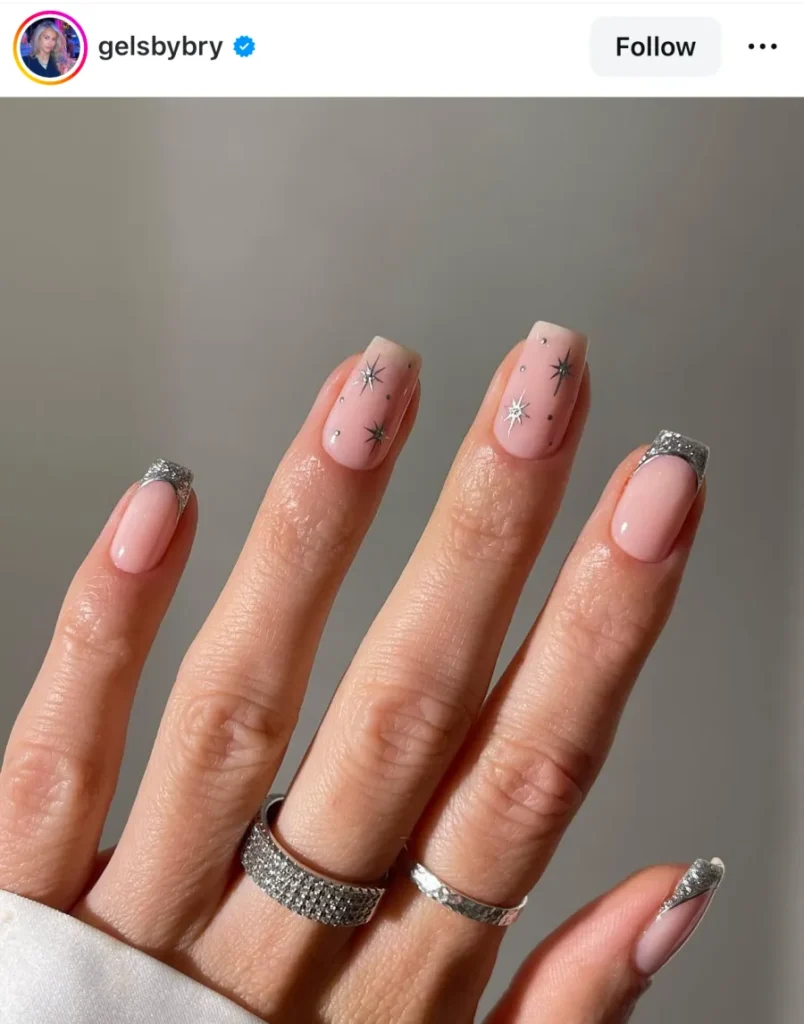 Gold and silver will never stop feeling like New Year’s Eve to me. I always end up going back to a soft gold shimmer or a full silver chrome when I want my nails to do the talking. You can keep it simple with one tone or mix both for that champagne sparkle that catches every bit of light.