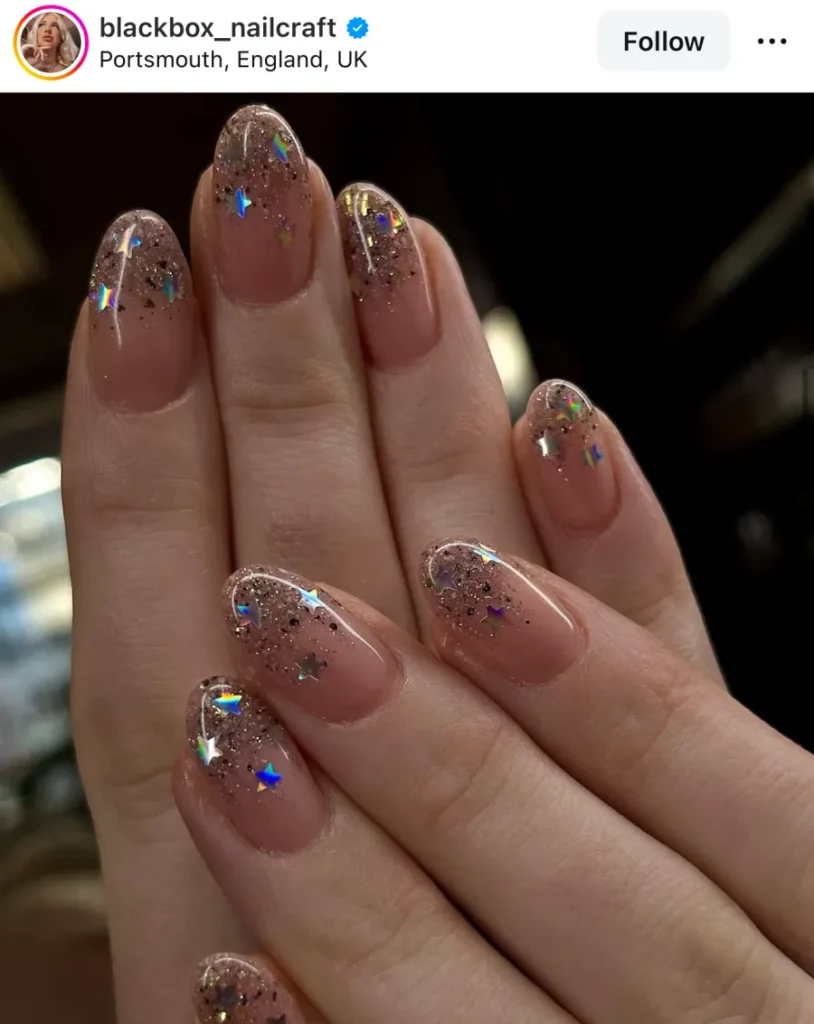 I’ve gone from soft nude shimmers to full glitter chrome, and somehow, it always feels right.
