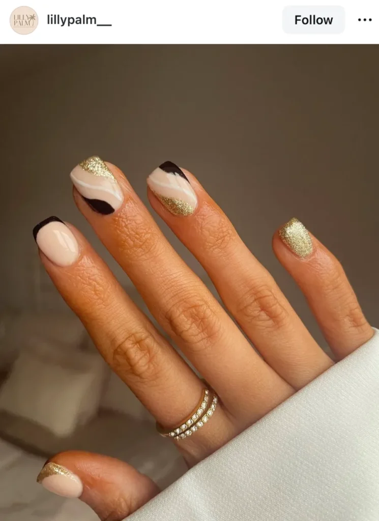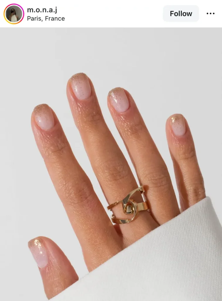 I didn’t expect short nails to look this fancy. The glitter’s soft, almost quiet, but it shines like gold dust caught in sunlight. If you like something that feels polished without being delicate, this one’s it.