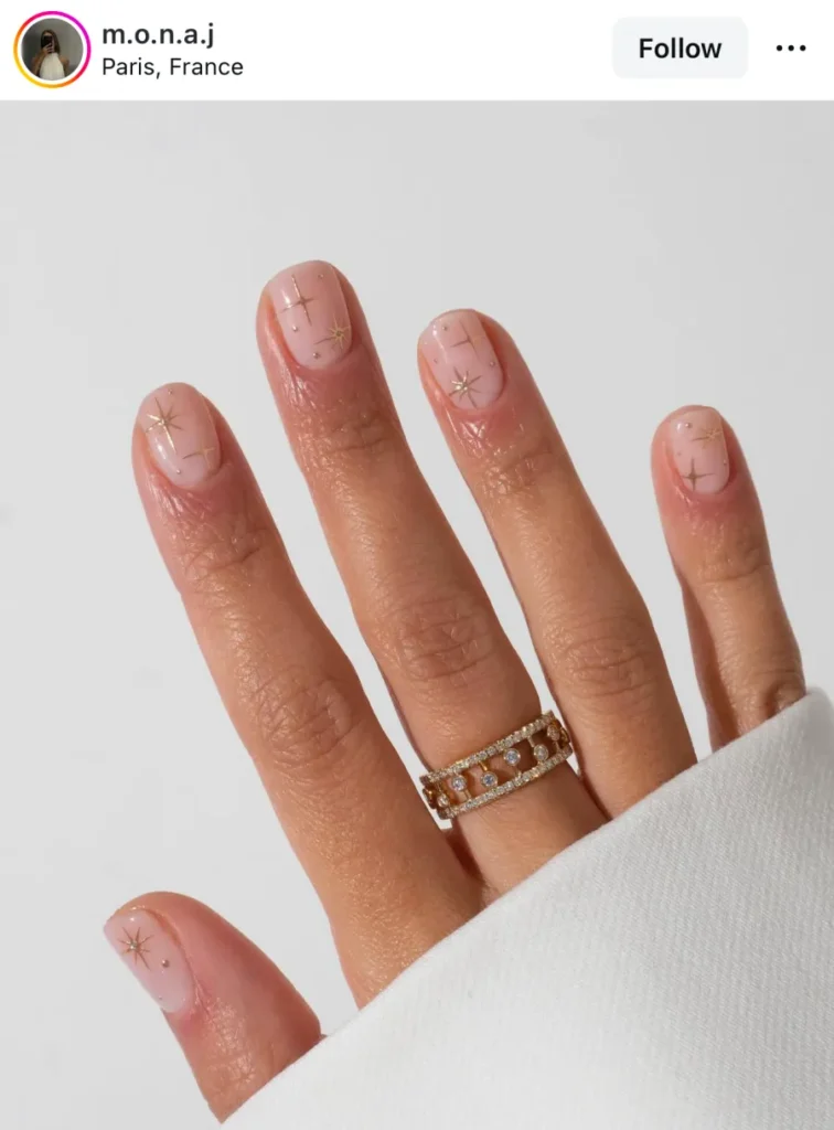 While some designs feel loud, this one whispers. The tiny gold stars fade into nothing, almost like confetti caught midair. You blink, and it’s gone.