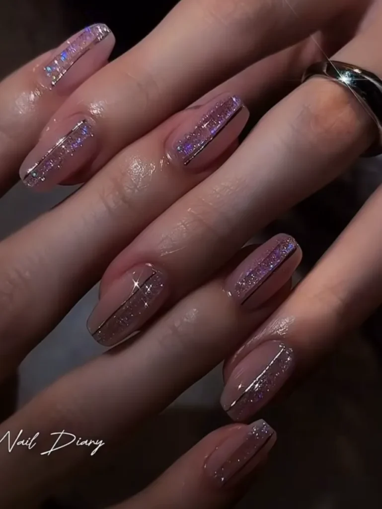 What I love here is how the glitter moves. It doesn’t just sit there; it flows along the nail, kind of like light reflecting off water. When you see it up close, it feels intentional but never forced.