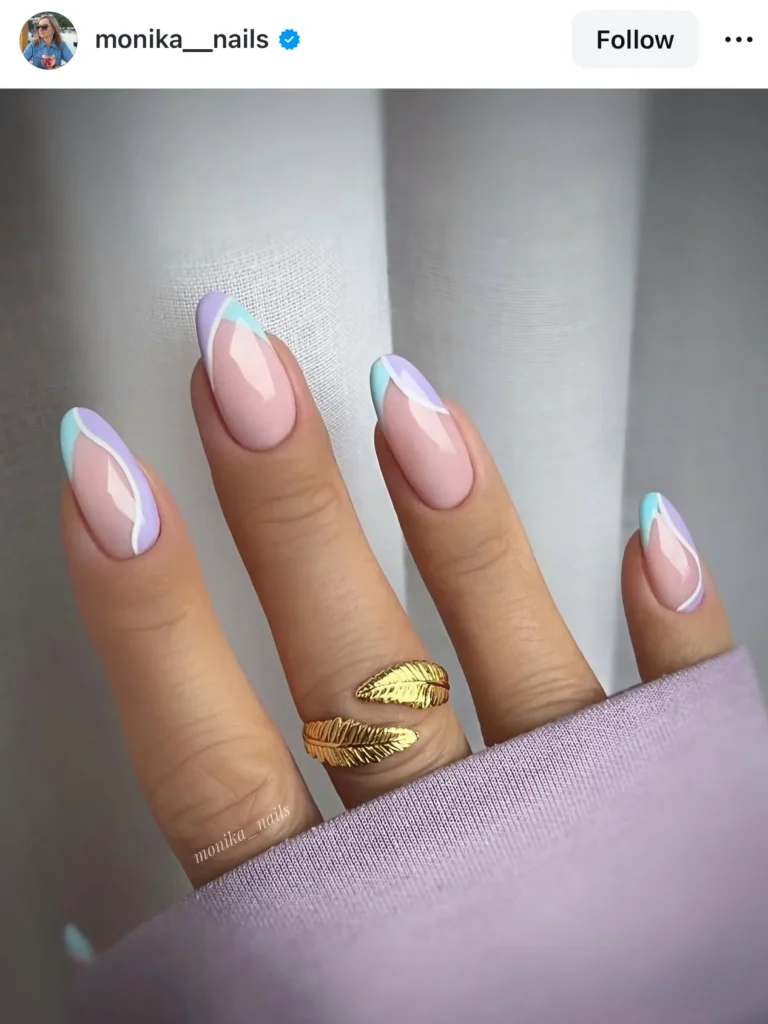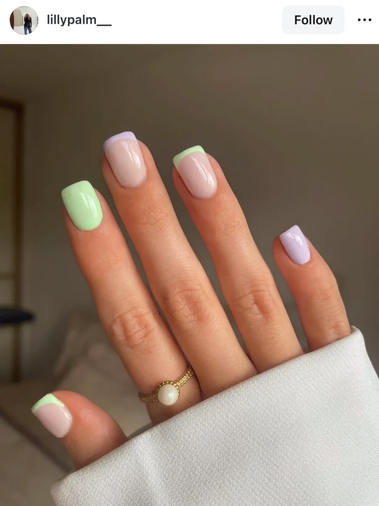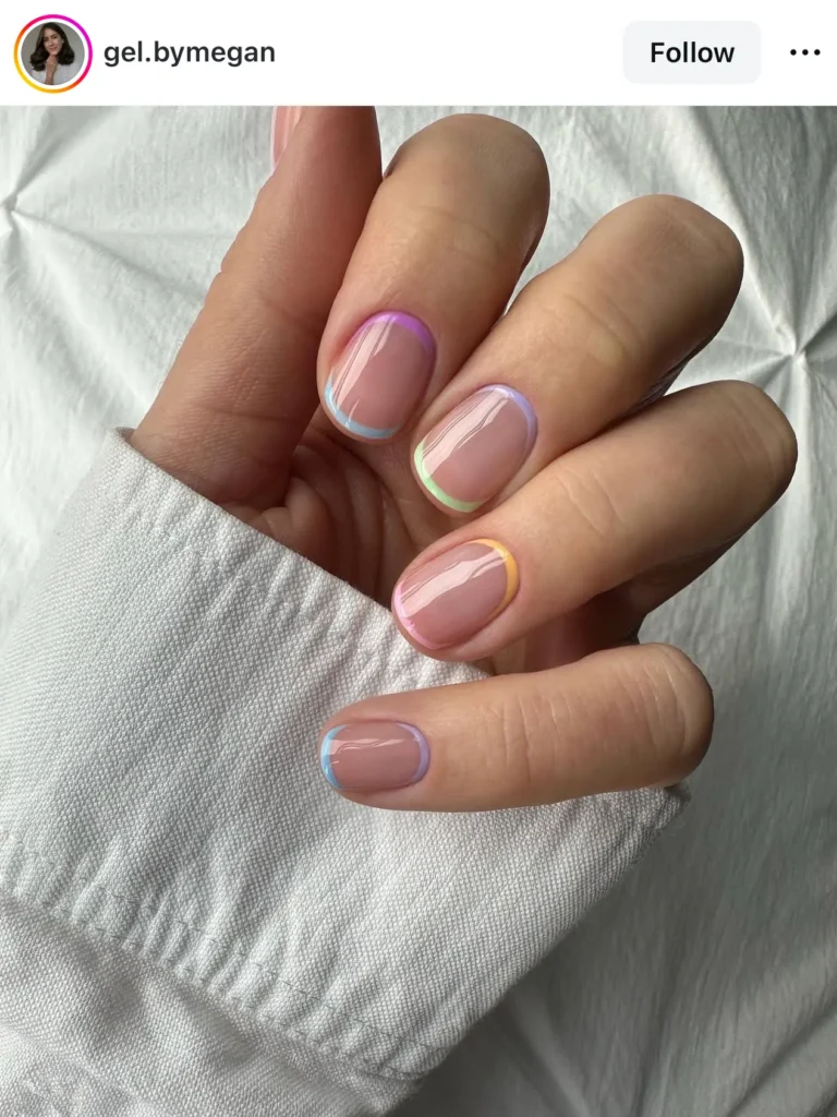 Why fill in the whole tip? Just doing the outline of a French mani in different pastel tones feels so much more high-fashion and airy.