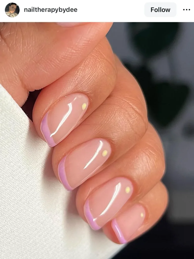 A classic pink French tip, but with a tiny butter-yellow dot right at the cuticle. It’s such a “if you know, you know” modern detail.