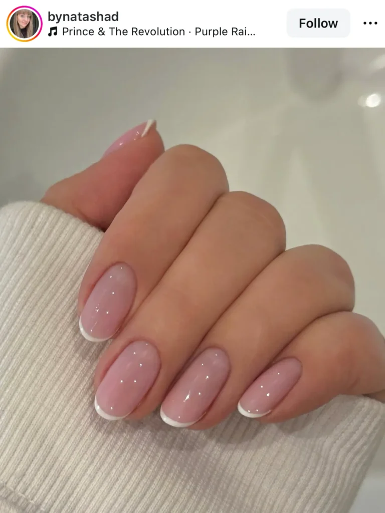 This is the “Quiet Luxury” winner. A translucent pink base with a white tip so thin it’s almost a secret—so classy.