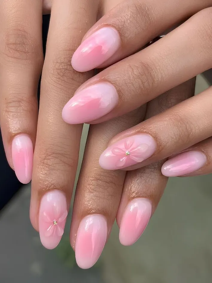 Aura nails are still huge, and adding a tiny 3D jelly flower on the ring finger makes the whole look feel so romantic and Pinterest-worthy.