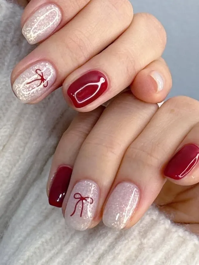 When I look at this set, the little ribbon on the white glitter nail steals the attention in such a sweet way.