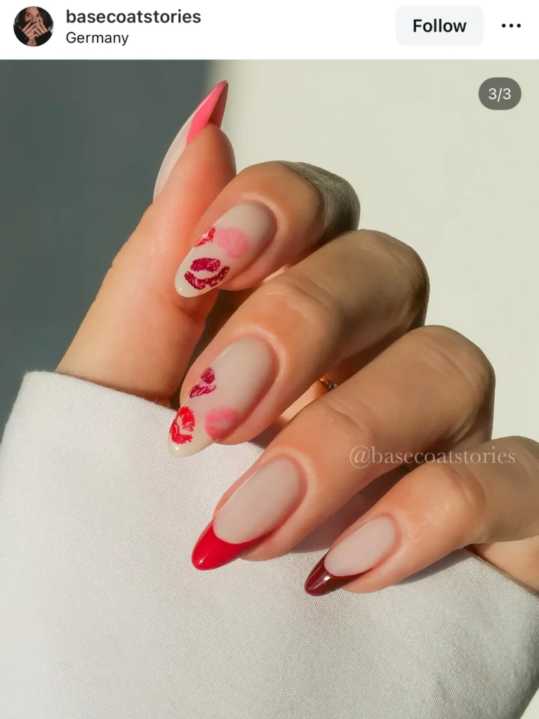 I love when a French tip gets a fun twist, and the tiny lip prints scattered throughout make this one feel playful in the best way.