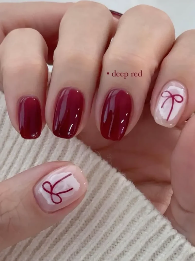 Some days I’m in a “less is more” mood, and minimal red nails fit perfectly. Thin lines, negative space, or just a subtle accent — it still gives that Valentine’s energy but in a quieter, more polished way.