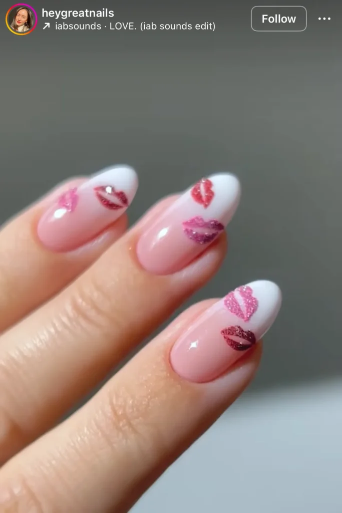 Deep-smile tips always stand out a bit more, especially with the square shape. The mix of red, pink, and white has this playful mood, and the lip-print details give it a little attitude in the cutest way.
