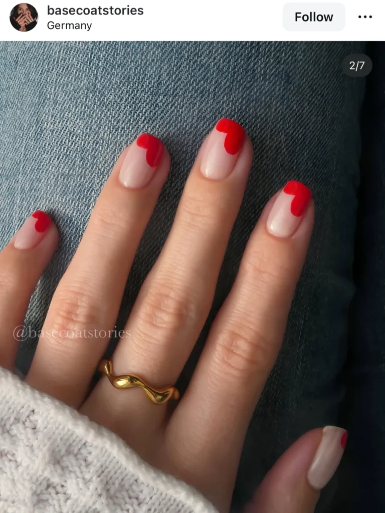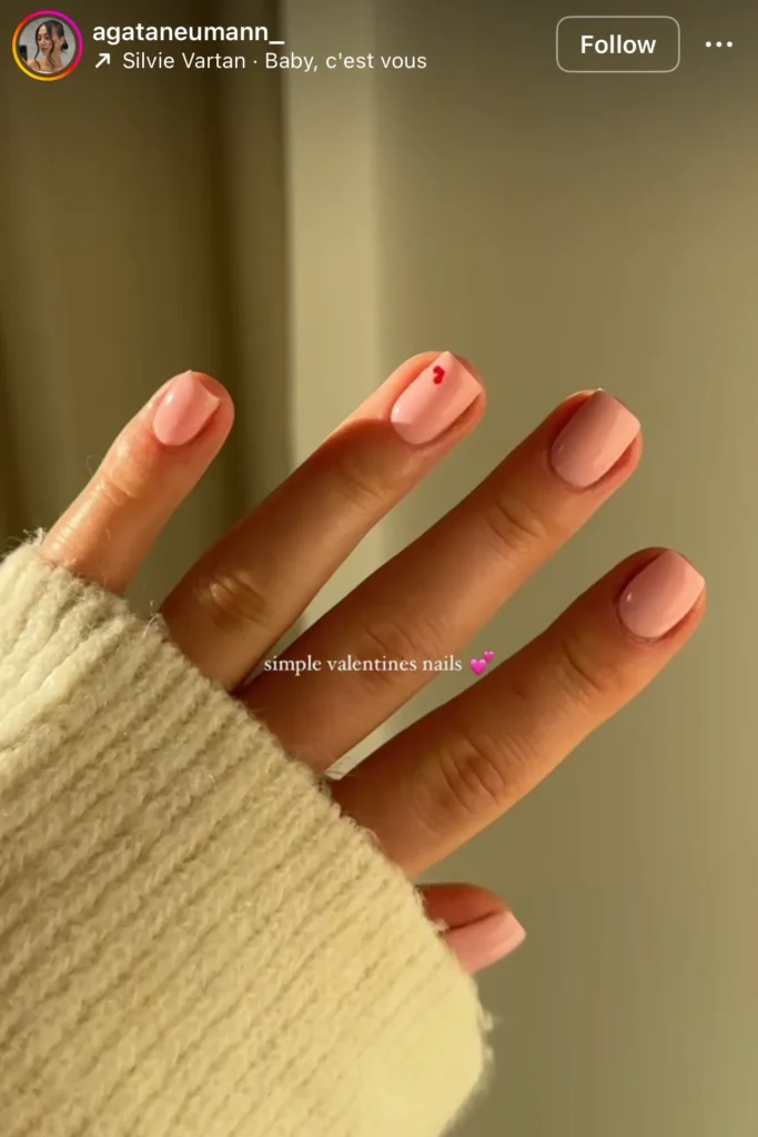These are the simple Valentine’s Day nails I’ve been loving lately. They’re easy to wear, look good with everything, and they’re festive without being “too much.”