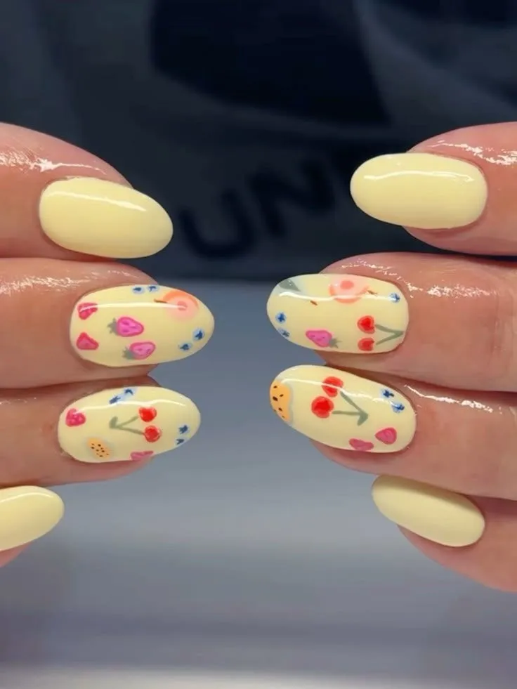 Nothing screams “spring is here” like tiny fruity accents. Whether it’s a lemon slice or a tiny peach, these little pops of color bring so much joy every time you look down at your hands.