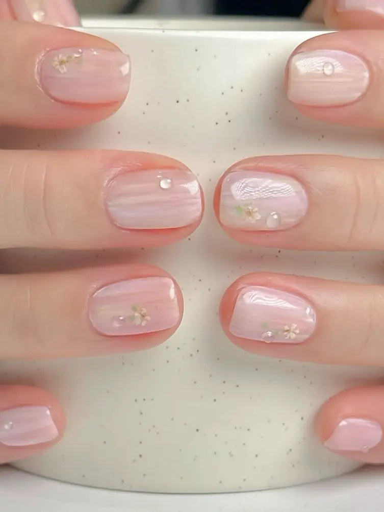 This is peak “Your Nails But Better.” The sheer pink is super natural, and the pearl finish gives it that subtle glow. Trust me, this sheer pearl pink nude is a lifesaver for when you want to look polished with zero effort.