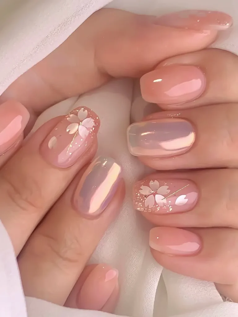 I always gravitate toward a sheer base because it makes the “grow-out” phase almost invisible. Tucking a few floral details near the tips or cuticles creates a design that stays looking fresh for weeks.