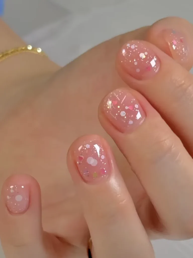 I usually stay away from heavy glitter, but this soft shimmer pink feels incredibly refined. It catches the light in the most subtle way, making your hands look bright and hydrated without being distracting.