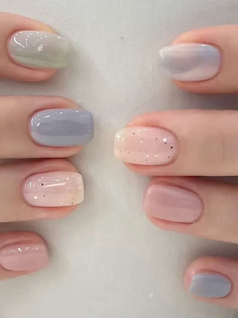 Who says stars are only for winter? A soft pink base with tiny white or silver stars feels so whimsical and fresh for spring. It gives me major “dreamy” vibes, and it’s a great way to add a bit of magic to an otherwise simple manicure.