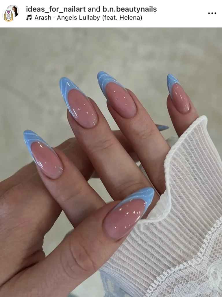 Adding swirls to a light blue tip gives the nails so much movement. It feels like a mix of Y2K fun and modern elegance. This design works best on slightly longer nails where the swirls have more room to “breathe” and flow across the tips.