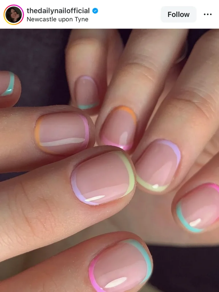 Why choose one color when you can have them all? Giving each finger a different pastel tip creates a playful, curated look that stays cohesive since all the tones are muted.
