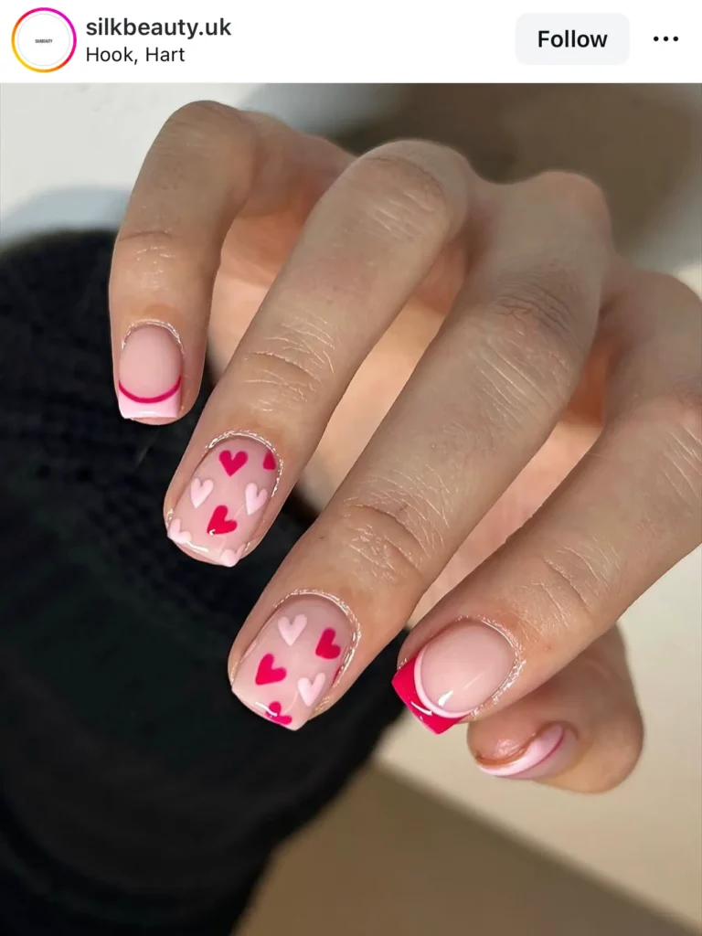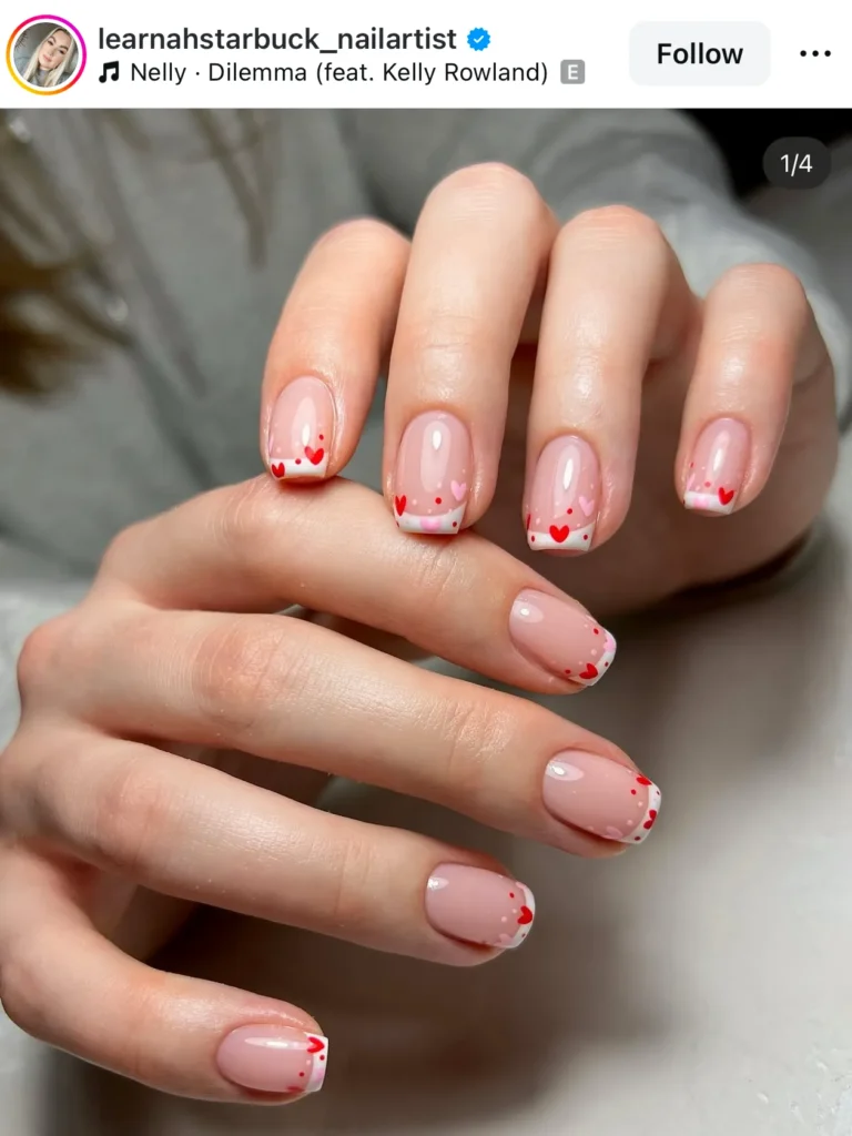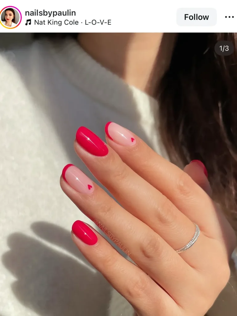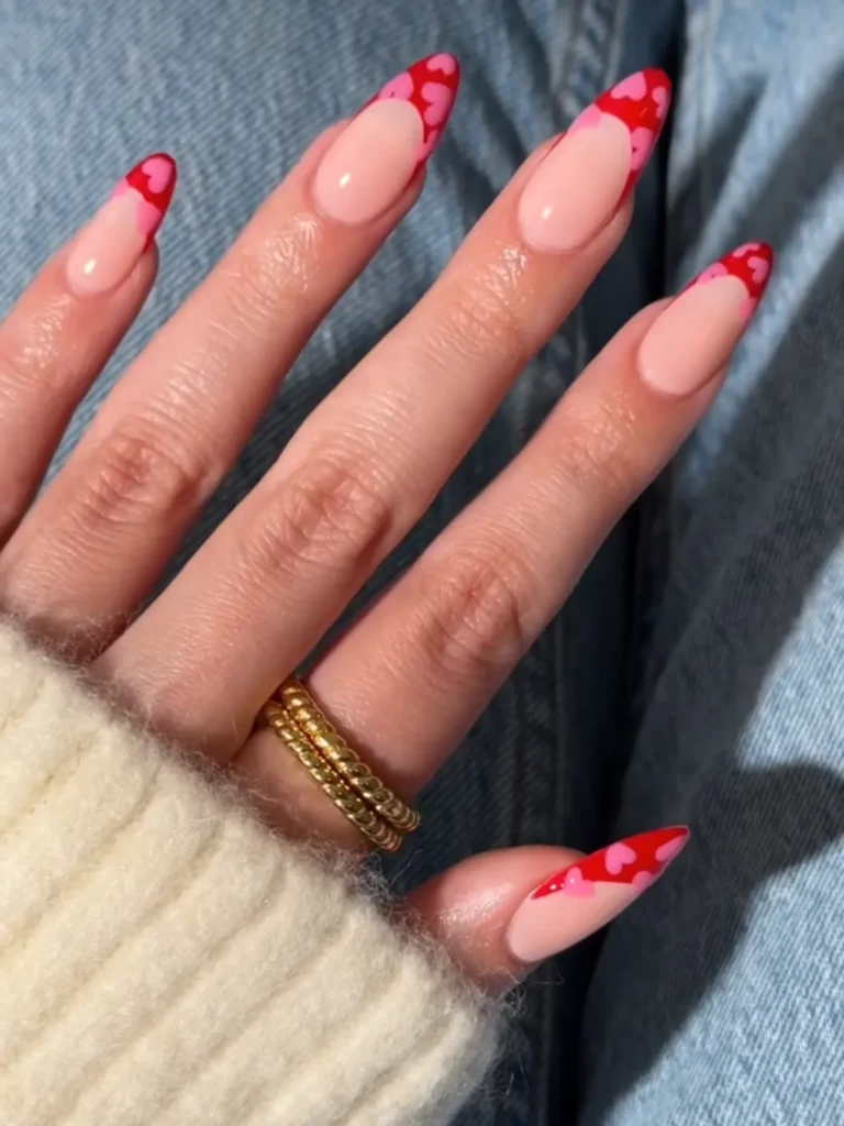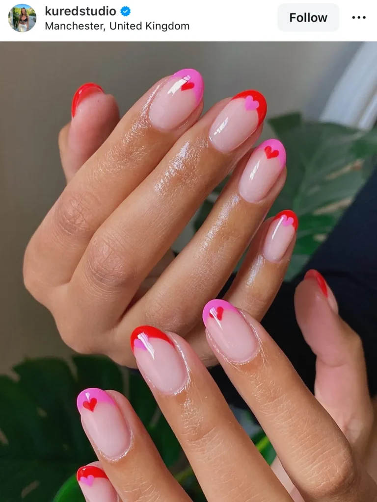 The white French base stays calm, but the red and pink hearts at the ends bring in a softer shift. You might read it as a small mood change, the kind that sneaks in quietly.