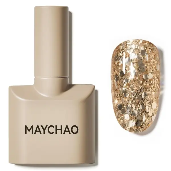 This one’s so cute and clean. The nude base keeps everything soft, and the chunky gold glitter just fades up like sunlight. If you like something fun but still low-key, this is the one you’ll wear all winter.